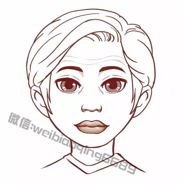 前额的皱纹位于中央,而不是横贯前额;