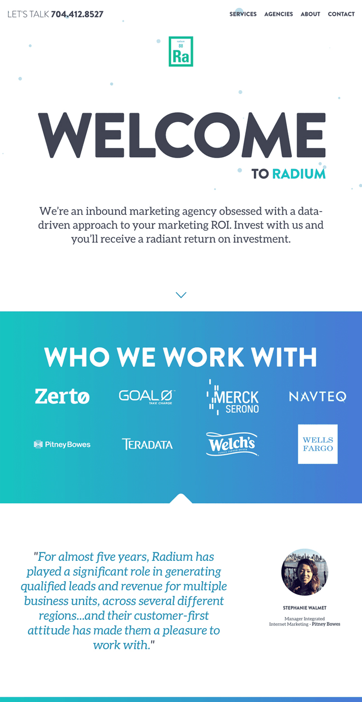 无衬线字体是一种流行的选择,并且非常适合这种风格,但是设计中不太复杂的衬线和显示字体也可以作为标题或特色文本做出重要声明。