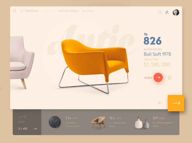 例如,请注意 Tubik Studio 的这个 UI 概念中按钮上微妙的阴影和颜色如何使导航选项瞬间变得清晰的。背景中的大字体和纸张状的表面分层可以归因于材料设计。