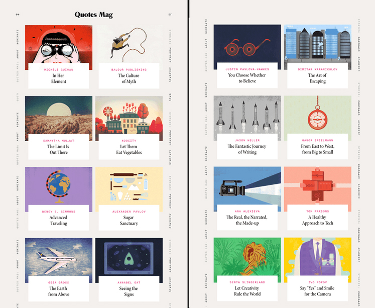 例如,下图这个由Betterment Bureau设计的基于网格的宣传册具有不同大小的正方形和矩形,以突出各种设计元素,如排版和图标。均匀的颜色块和简单的插图增加了平面的效果。