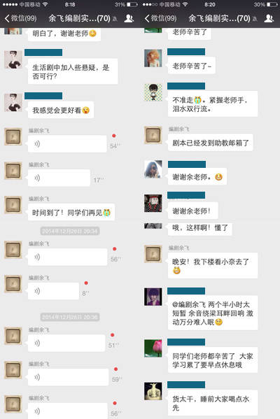 编剧帮2014年8月率先推出微信培训模式,这种以微信为平台、以微信群组为班级的移动培训班的特点是学员缺席不缺课,解决了常规培训中的时间和地域问题,而且课后学员之间可以充分讨论讲师所讲内容,达到事半功倍的效果。