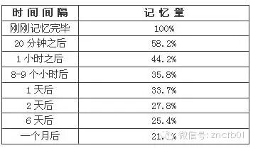 这条曲线告诉人们在学习中的遗忘是有规律的,遗忘的进程不是均时候后,几乎就不再遗忘了,这就是遗忘的发展规律,即"先快后慢"的原则。观察这条遗忘曲线,你会发现,学得的知识在一天后,如不抓紧复习,就只剩下原来的25%)。随着时间的推移,遗忘的速度减慢,遗忘的数量也就减少。有人做过一个实验,两组学生学习一段课文,甲组在学习后不久进行一次复习,乙组不予复习,一天后甲组保持98%,乙组保持56%;一周后甲组保持83%,乙组保持33%。乙组的遗忘平均值比甲组高。