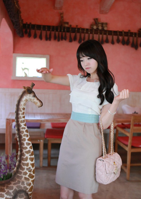 及膝裙 !是指裙子的长度刚好位于膝盖部位的裙子。但一般不把裙长设计在此位置,因为这 个长度的裙子正好盖住一半的膝盖,给人们一种不舒服的视觉感受。一般可以采用稍长于膝盖的裙长,这种裙子的长度最为标准和自然。