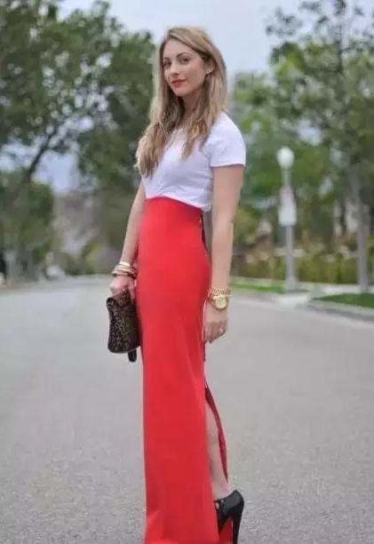 小个子穿长裙的诀窍是要选择一个适合你的臀部和大腿的裙型,例如包臀长裙哦。