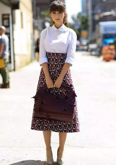 及膝裙:长度至膝关节上端,约在膝盖上5cm左右。这是一类比较正统的半裙,端庄且优雅,应该说是婆婆们最喜欢的一类裙长,但是矮个儿姑娘并不很合适,会让腿变短哦!