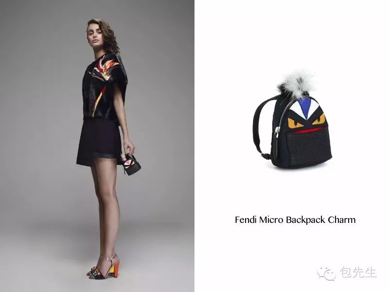 还没完还没完... Fendi还出了一个更小更小的书包... 是的... 小得你都基本看不到!这是Fendi超级迷你书包挂坠,可以挂在别的包包上也可以拿着玩...