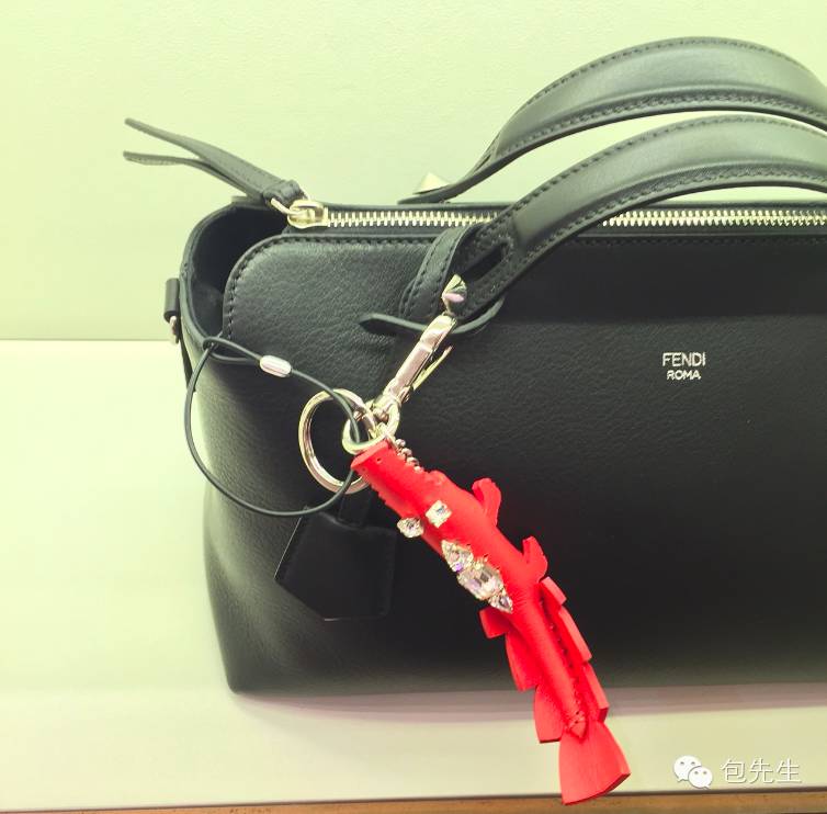 还没完还没完... Fendi 2016年的度假季还出了一款灯泡的迷你书包,当然也是拎着的,而右边这只挂着的就是带字母的毛毛挂坠。