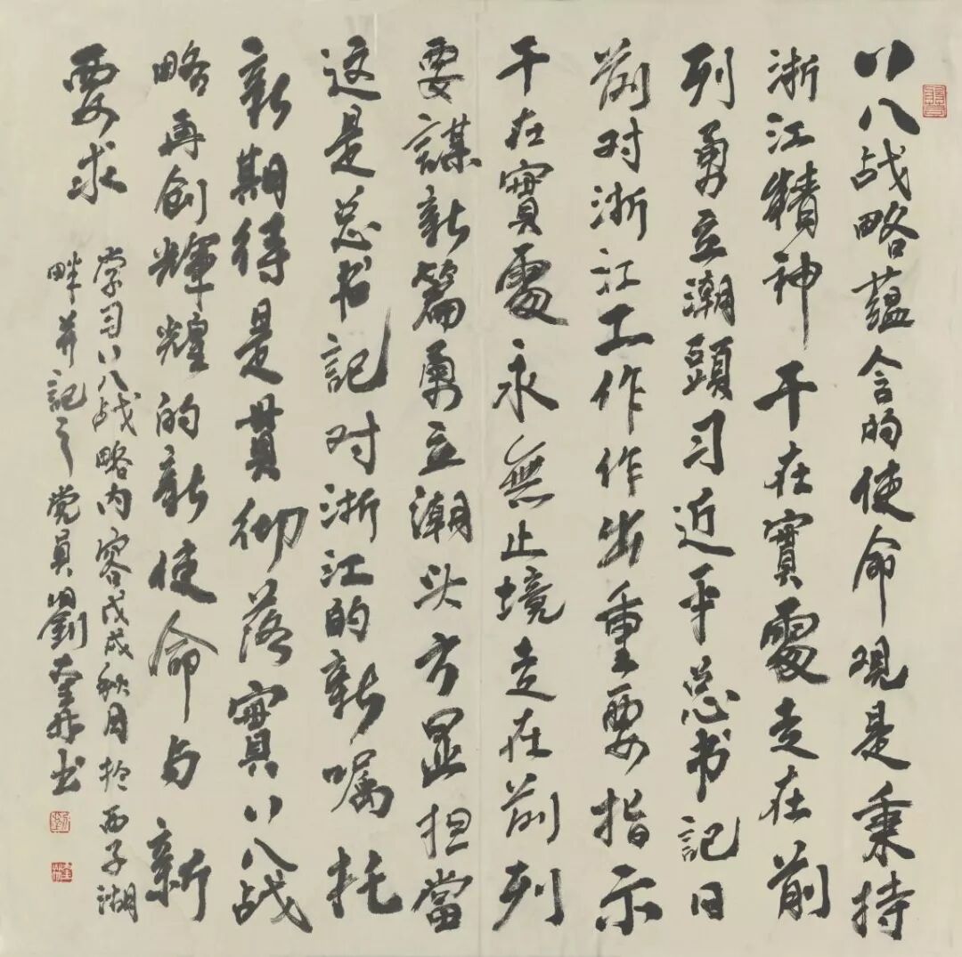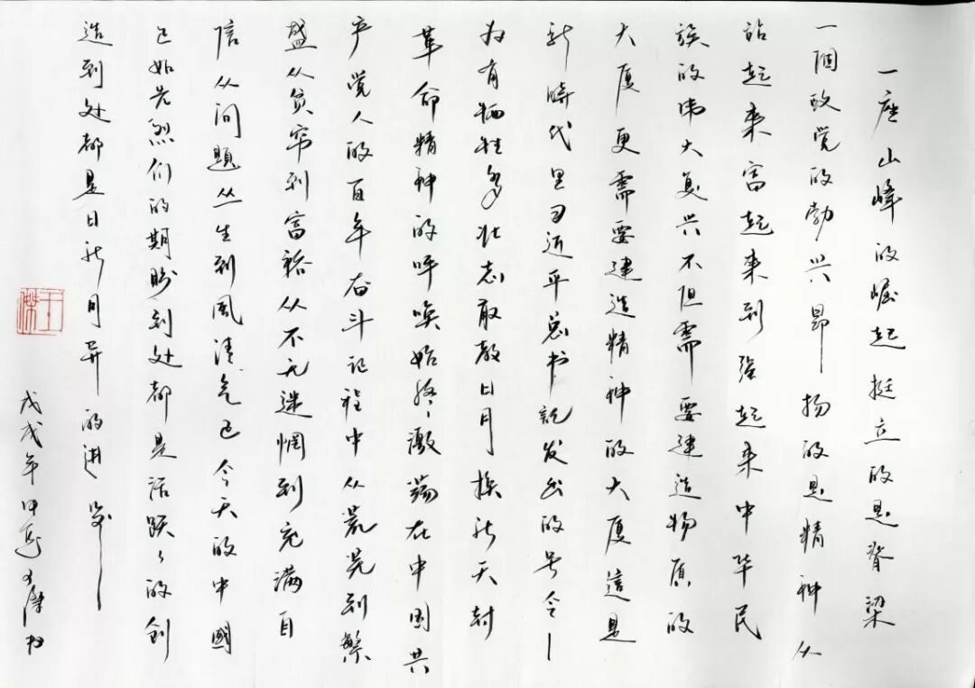薪火相传,勇攀新时代。在新时代的探索之路上,文创企业联合支部不负所托,擎起“文化、创意”的旗帜,再接再厉、勇攀高峰,已书法笔墨彰显党支部的活力、凝聚力与魅力,充分体现了文创支部党员爱国、爱党、敬业的精神,为实现中华民族伟大复兴的中国梦贡献力量。