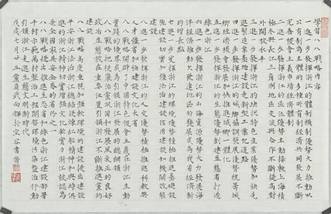 沈大良书记在序言中表示:“本次书法展,体现了本支部党员们的才华,更是展示了党员们的情怀,是一份丰盛的精神大餐,希望以后有更多的作品以饗读者。”他希望在街道“两新”党委的正确领导下,以翻篇归零的心态,抢抓机遇,更好的发挥支部的特长、特色走在前列,永攀新时代,再创新佳绩。