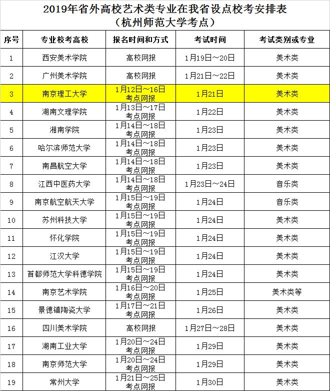 *因学校安排变化,南京理工大学临时取消浙江考点