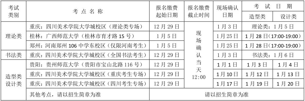 (3)造型类和设计类考生:重庆、四川考生只能在重庆考点参加考试,贵州考生只能在贵阳考点参加考试。