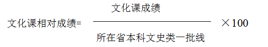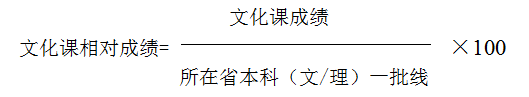 考生文化课成绩总分÷考生所在省本科(文/理)一批线×100),相对成绩四舍五入保留至小数点后三位。