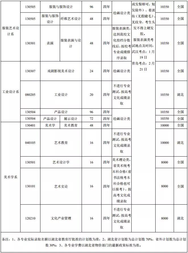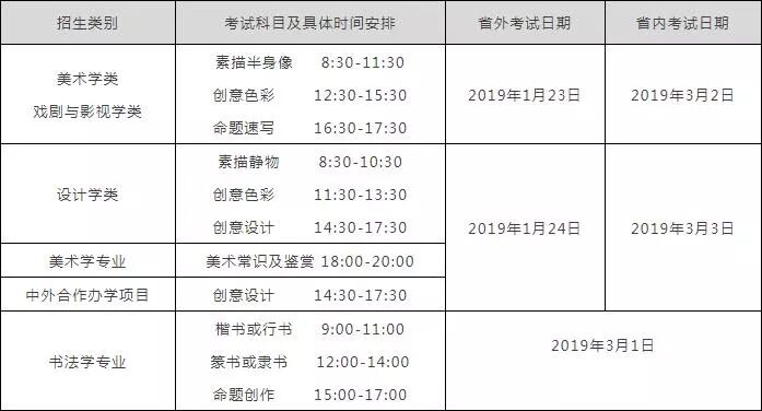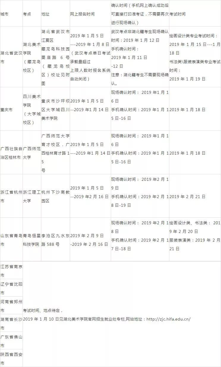 3.武汉考点考试时间:绘画设计类为1月15日至1月18日;书法类、服装表演类为1月19日。学校将视报名人数与考试容量做适当调整。