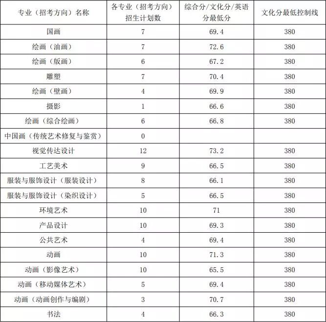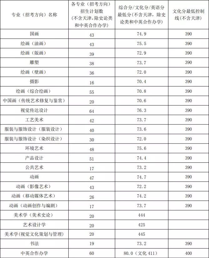 3、 美术理论类:考生通过所在高考省份美术类专业统考本科合格后(考生所在高考省份书法类专业统考本科合格也可报考),按照高考文化分排序从高到低择优录取。高考文化成绩总分相同时,按照英语和语文成绩相加后依次录取。
