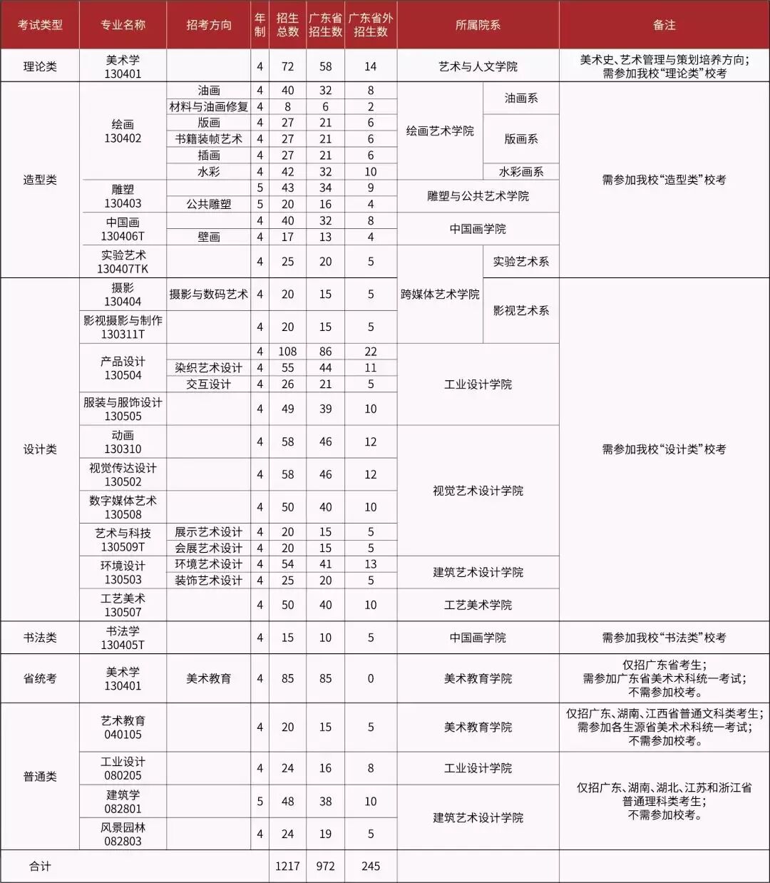 5. 美术学(美术教育)专业:考生需参加广东省美术术科统考,统考专业成绩和文化成绩达到广东省美术类本科院校录取分数线,在投档考生中按艺术类统考专业投档总分(即美术类总分)从高到低择优录取。