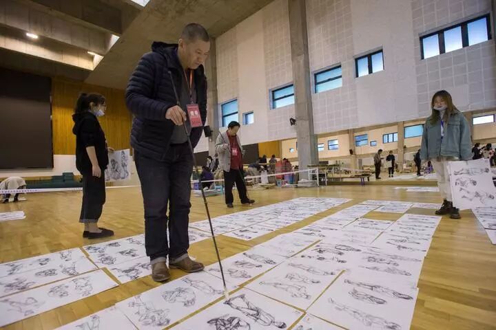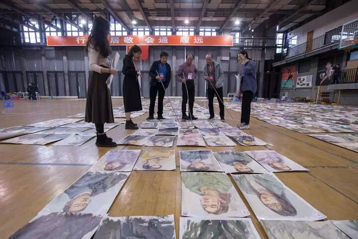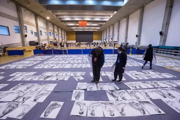 中国美院象山校区20号楼体育馆是今年的阅卷现场。场内摆放着正在进行第三轮选拔的试卷,阵势相当壮观。