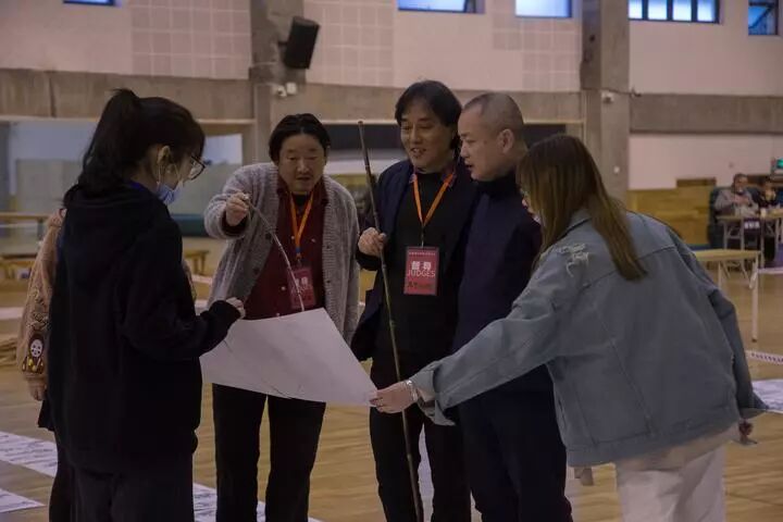 中国美院招办主任李都金向记者透露,这些“躺”在地上的画作分数都是73分以上的画作。一旁,督导组老师人手一根长竹条,在画上划过,圈圈点点,讨论声不时响起。