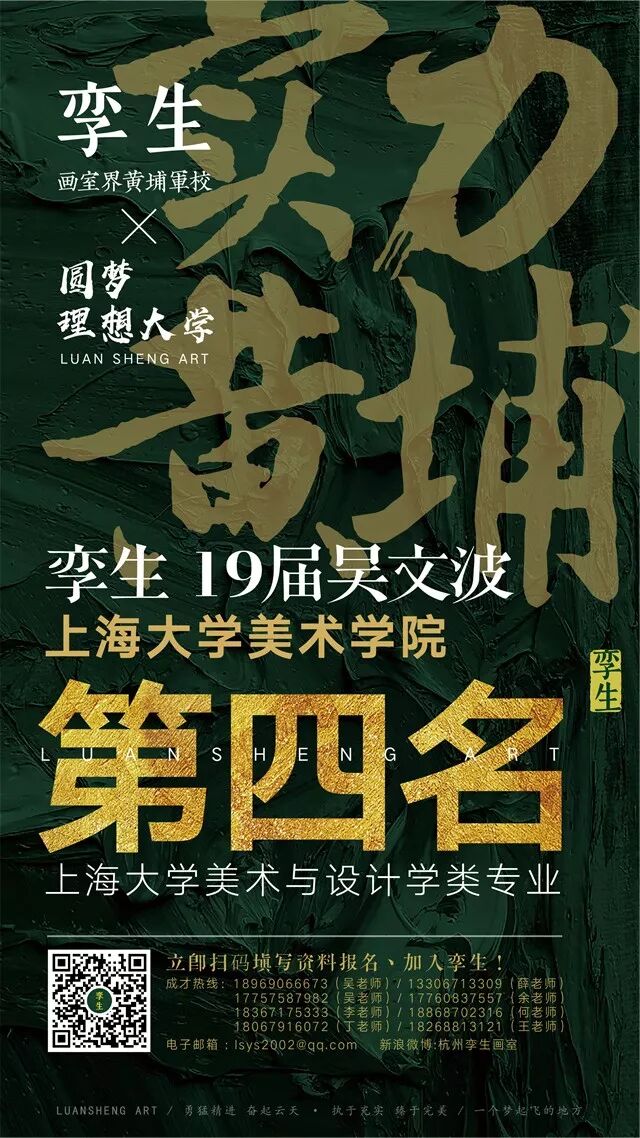 实力黄埔丨孪生画室上海大学美术学院再夺状元1位!榜眼2位!探花2位!
