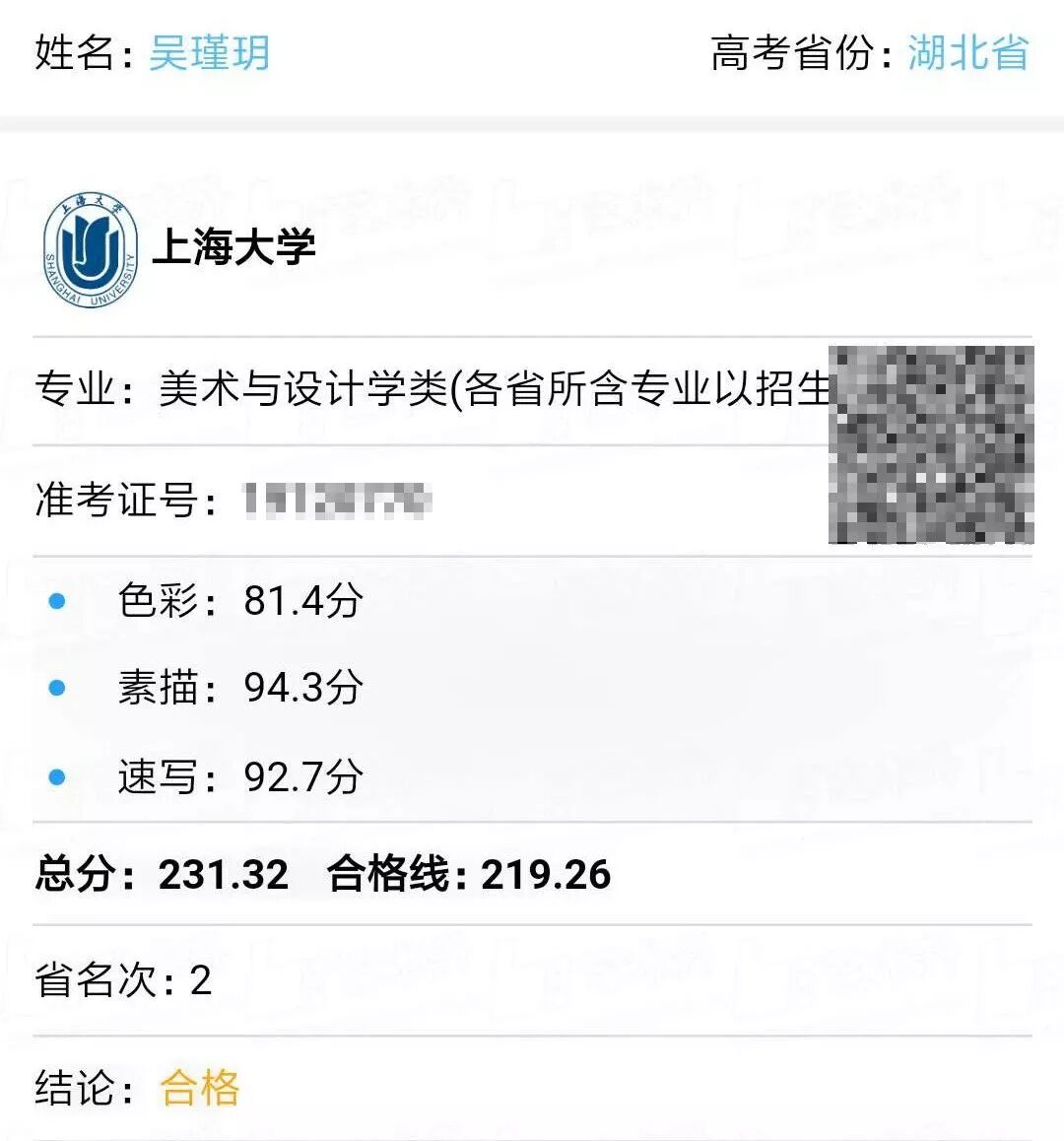 2019届十大美院首轮成绩已出,恭喜龙伊同学勇夺上海美术学院第一名!郭馨同学、吴瑾玥同学勇夺上海美术学院第二名!焦洋同学、王莉彤同学勇夺上海美术学院第三名!