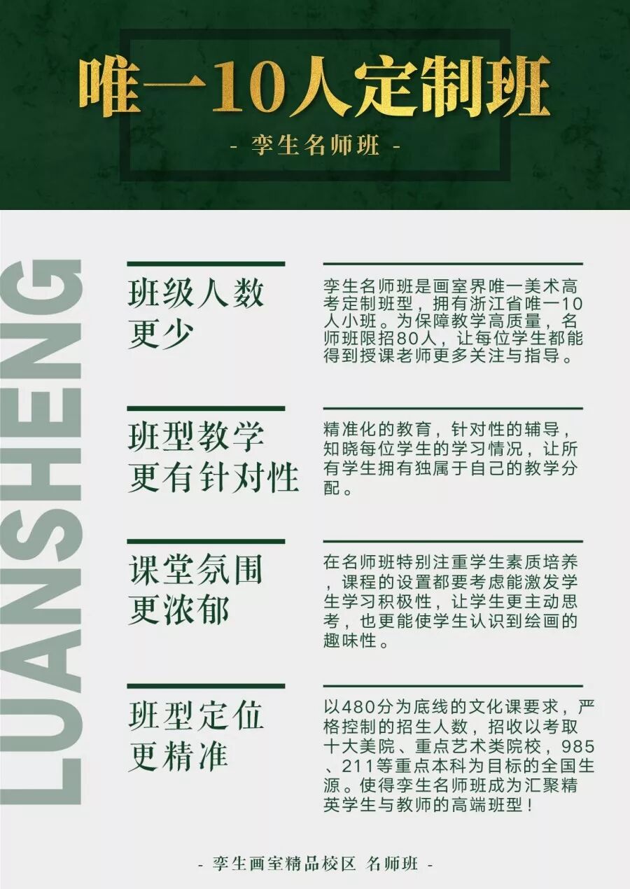 因孪生名师班人数有上限,报名此班型的学员需浙江考生文化课500分以上、全国考生需480分以上(高考满分不足750分的换算成750分计算),同时需进行专业选拔。
