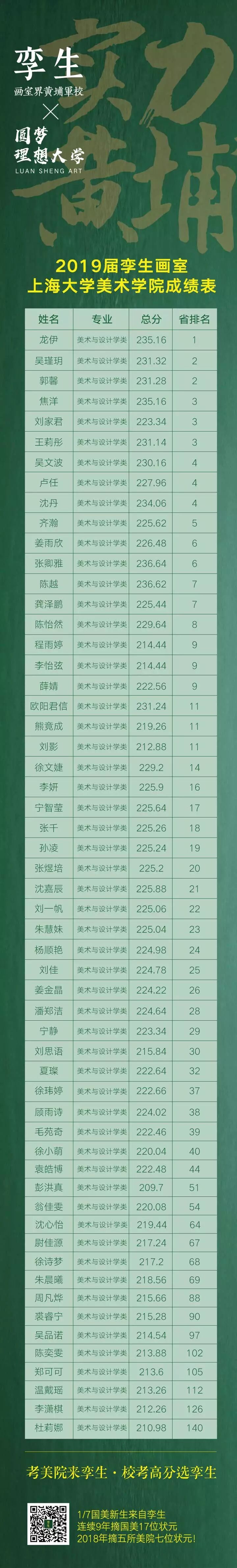 实力黄埔丨祝贺孪生画室19届上海大学美术学院再夺状元!(过线学员全网公布)