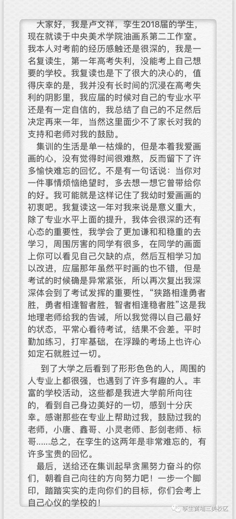 孪生画室2018届学子卢文祥,现就读于中央美术学院