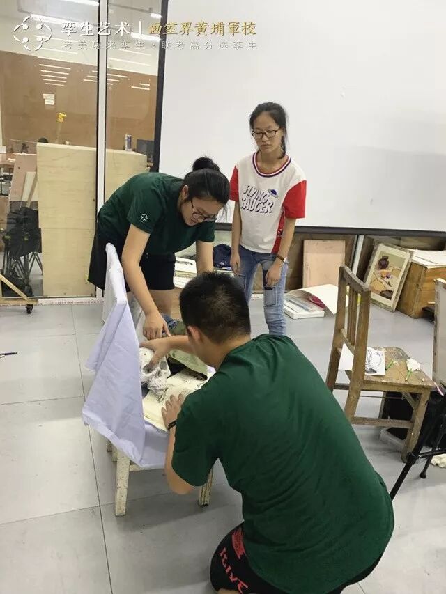 此次在素描写生课程课中,同学们组成若干小团队,一起挑选静物、摆放静物,同学们用心地挑着每一个静物的造型和颜色,回来后自己摆静物。最后再亲手完成作品。课程结束后,每组同学相互点评学习,共同进步。黄埔状元导师班不仅注重学生的动手能力和表达能力,更注重他们团队的意识。