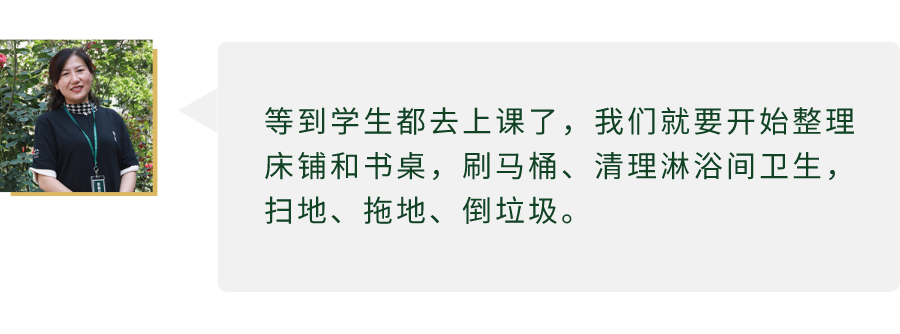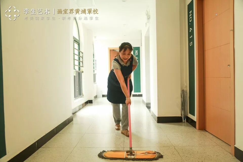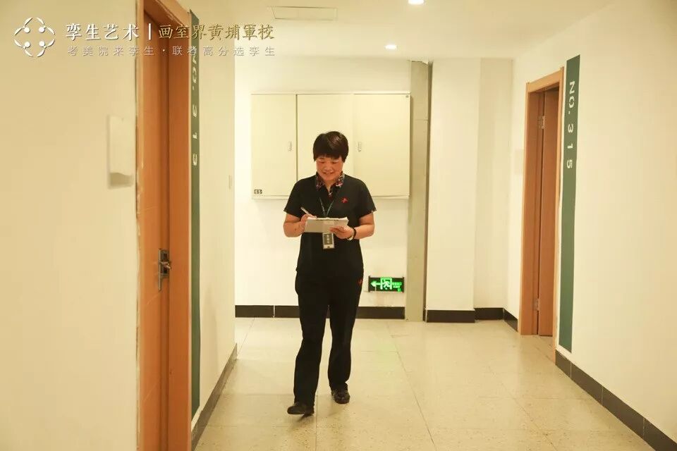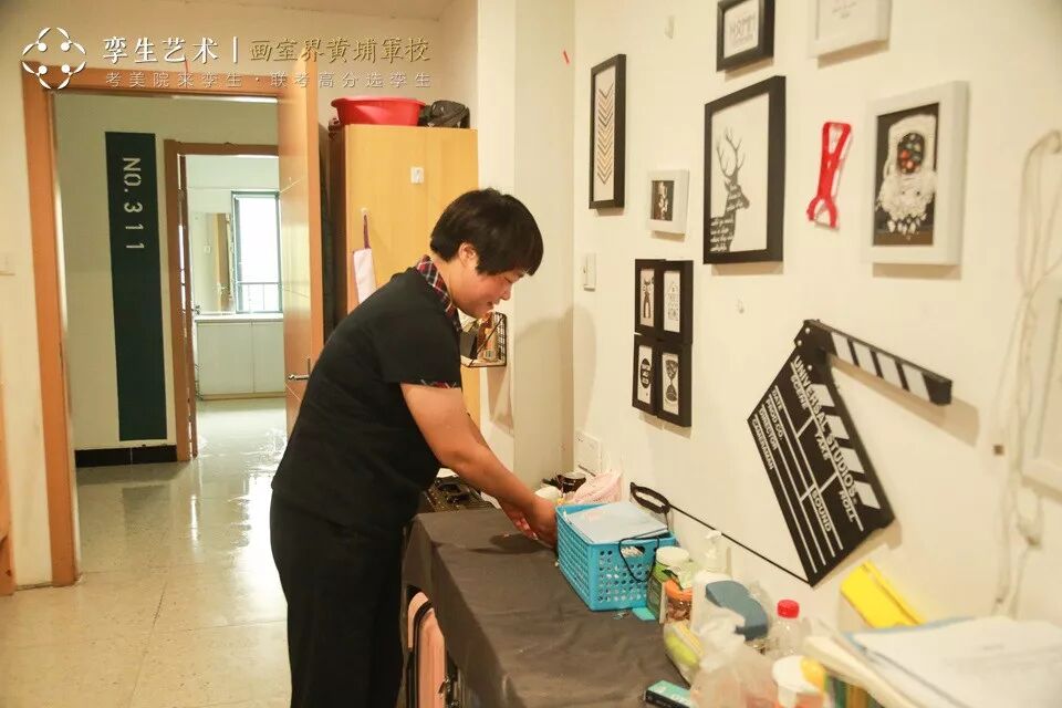 清晨,当同学们还在熟睡中,孪生画室的宿管阿姨们就换上了工作服,打开宿舍大门,开始准备一天的工作。