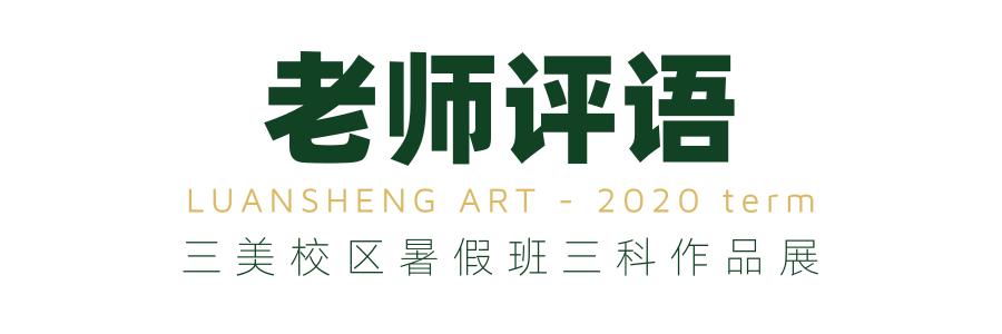 张嘉仪同学本身的性格就很安静,她的画面不需要去调整,给予她足够的引导,明确的方向,她能够画出你预料之外的画面。作为为数不多的初三学生,在即将升入高中的暑假中,更希望她能够培养起对于画画的热爱及兴趣,让她在各个方面能够有更大的成长空间。