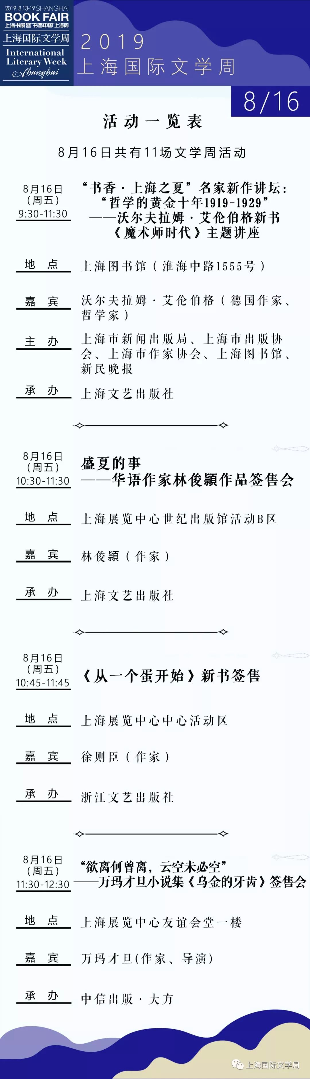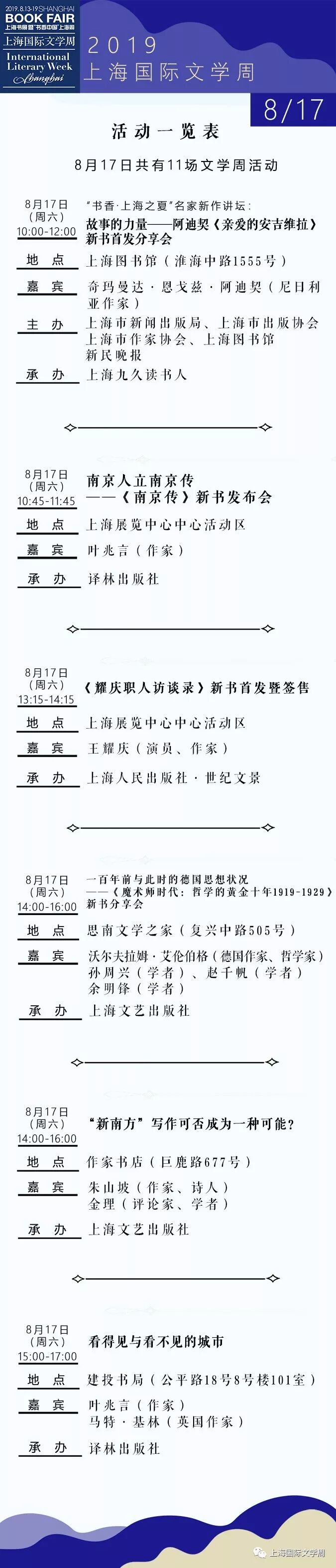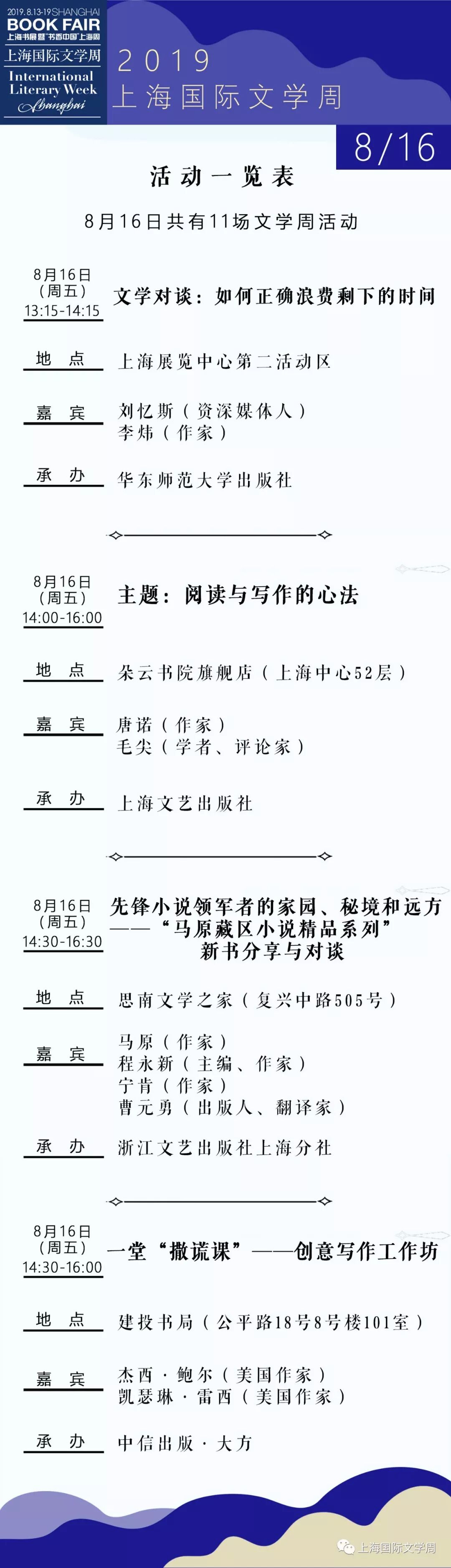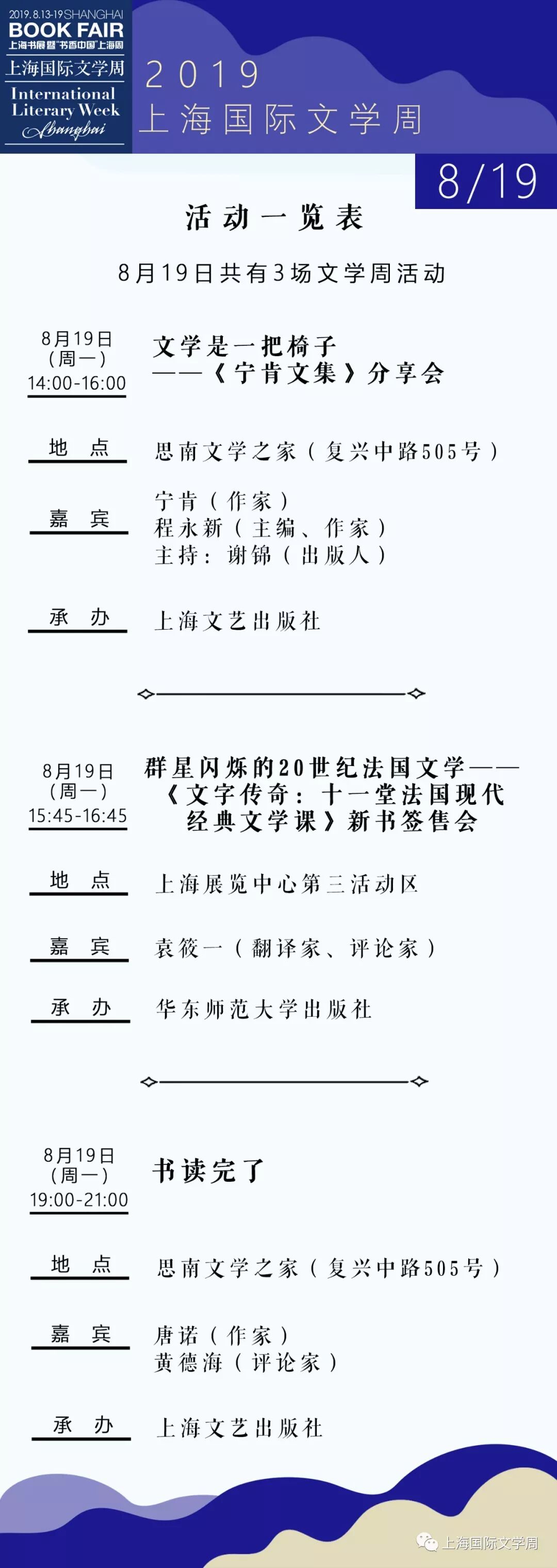 2019上海书展·上海国际文学周活动总表