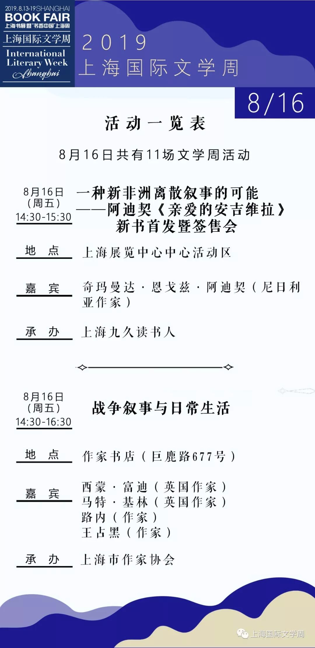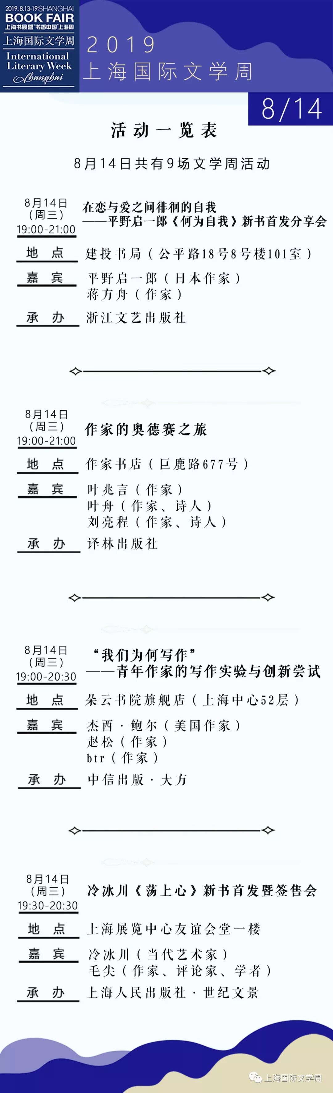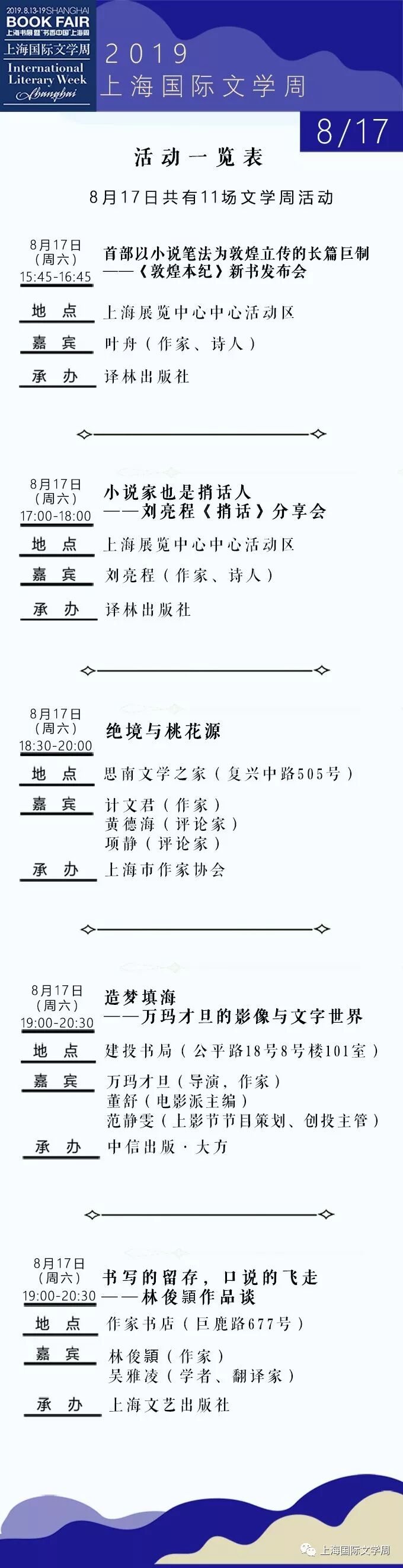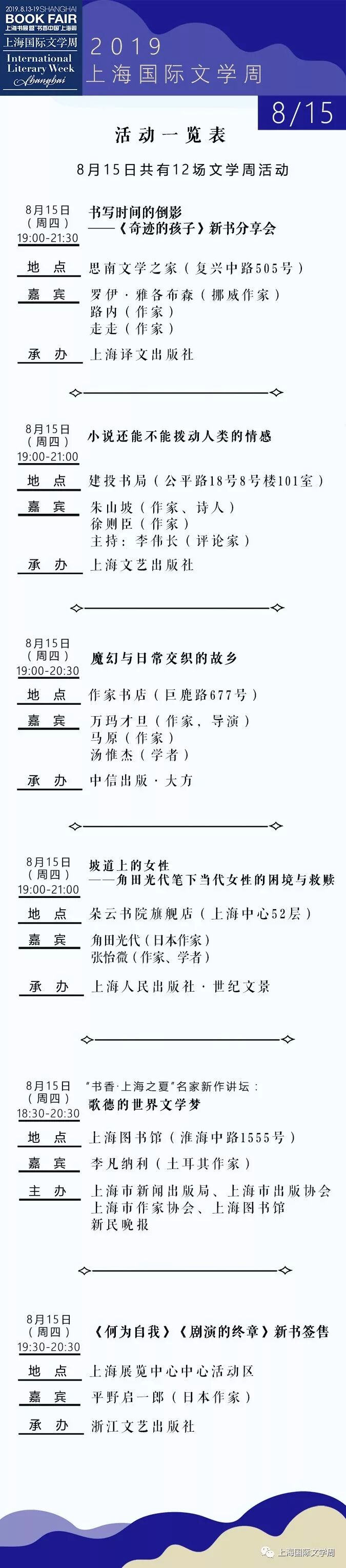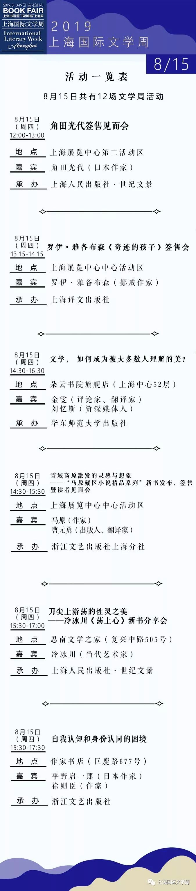 2019上海书展·上海国际文学周活动总表