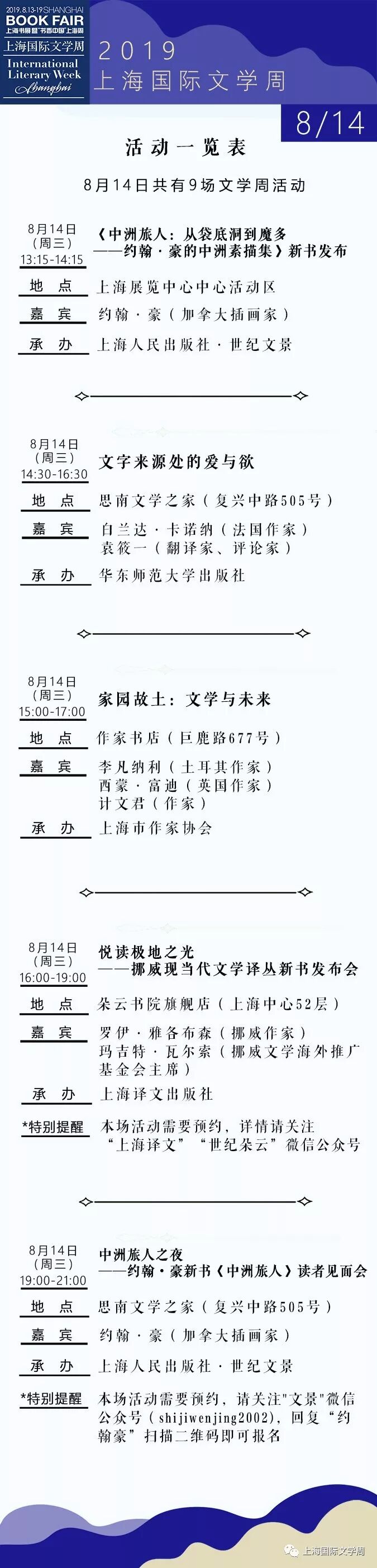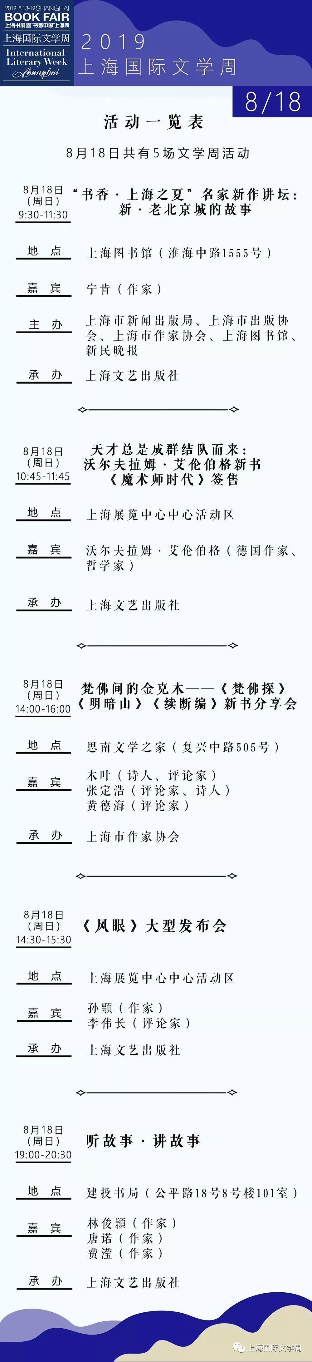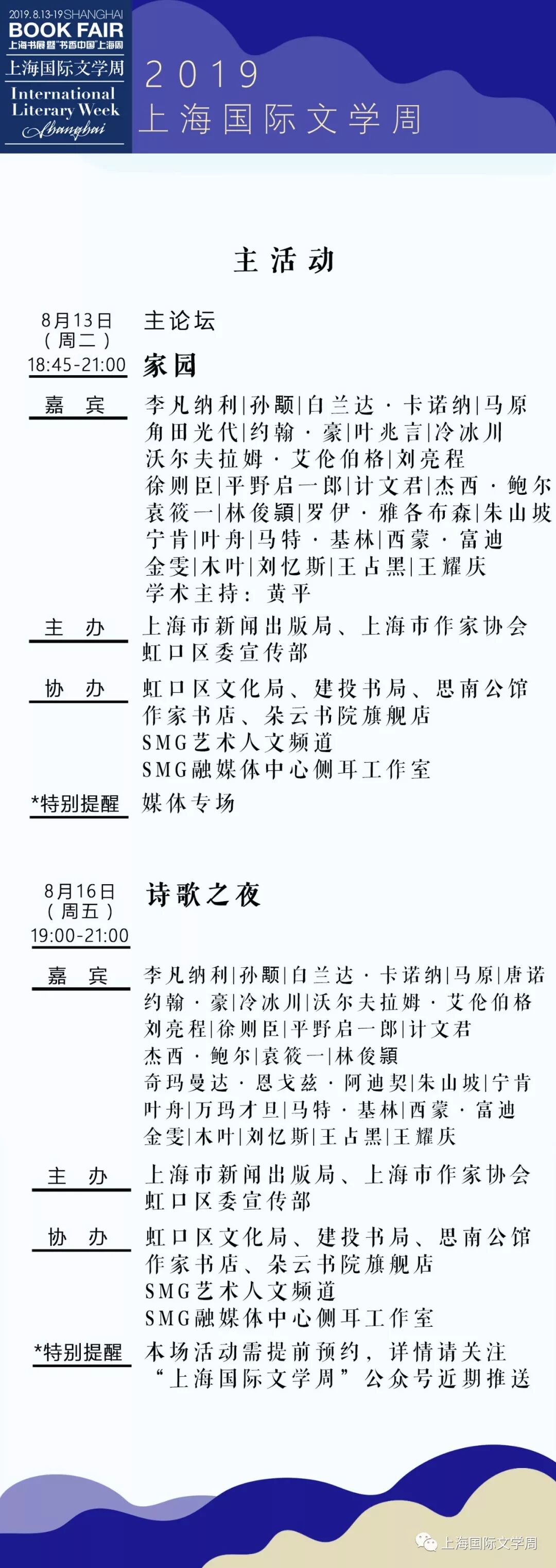 【活动预览】2019上海书展·上海国际文学周活动总表