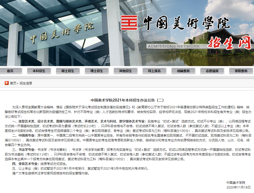 久等了!中国美术学院于11月18日公布了2021年第二个招生公告。