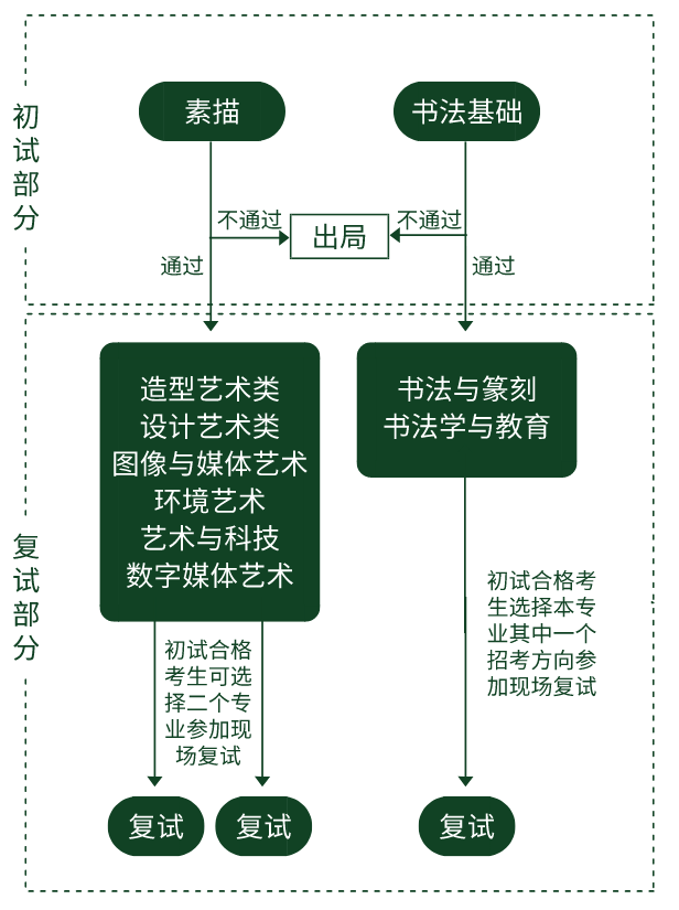 专业:造型艺术类、设计艺术类、图像与媒体艺术类、环境艺术、艺术与科技、数字媒体艺术、书法与篆刻、书法学与教育