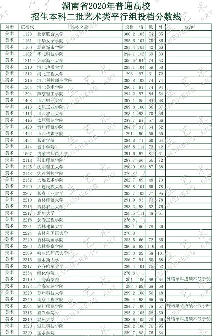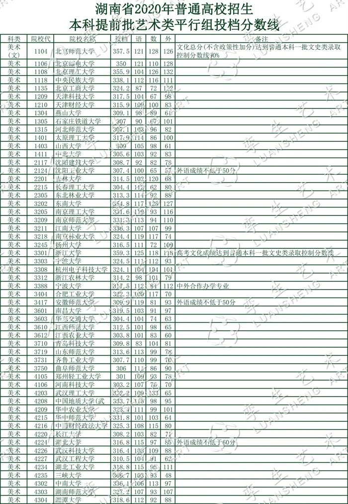 湖南省2020年普通高校招生美术专业省统考合格线155