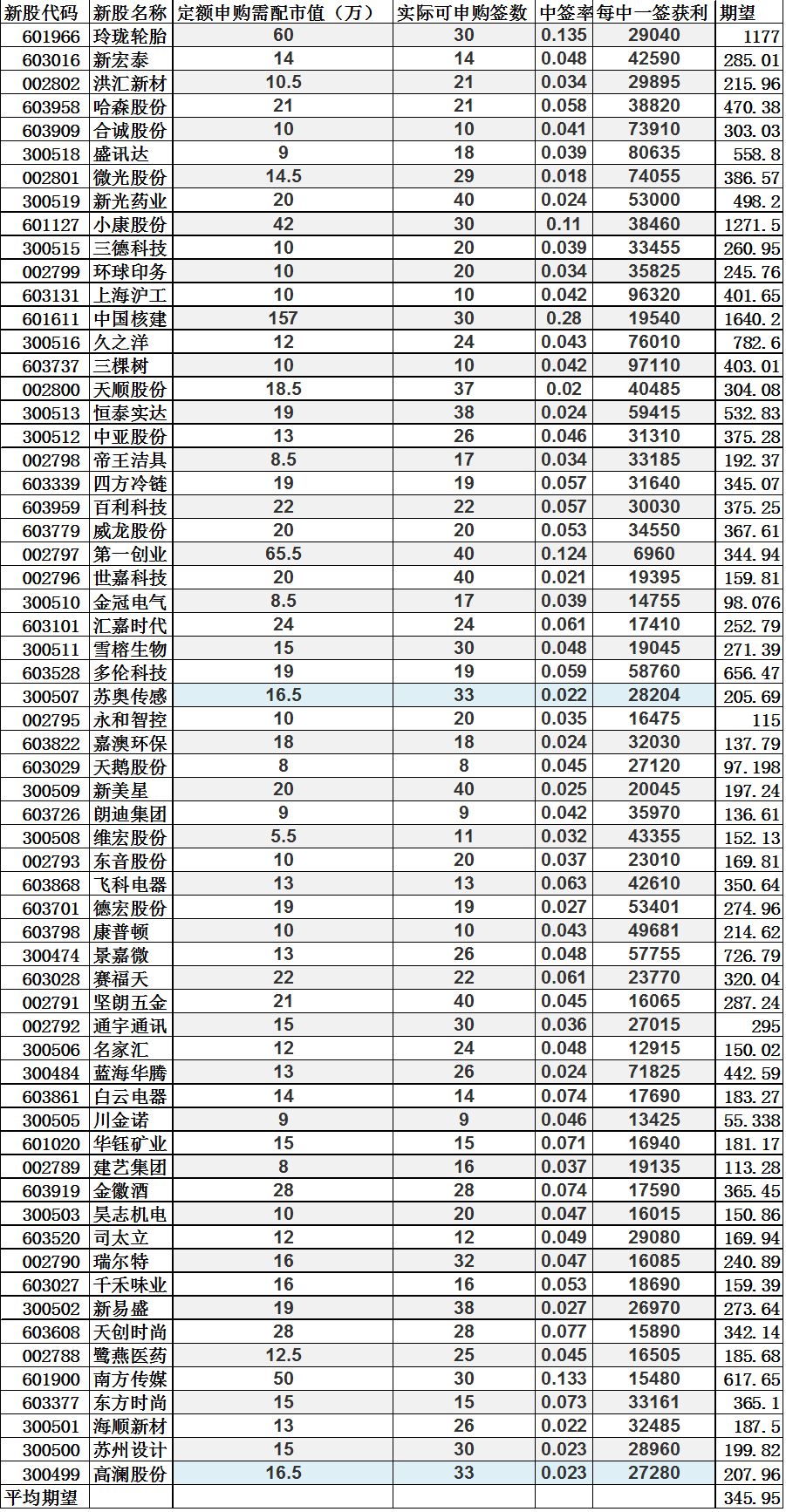 即:平均收益(期望)=中签率*每中一签获利金额*实际可申购签数