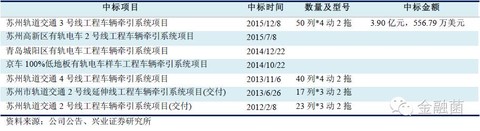 江苏经纬之前已多次中标各类地铁项目,而在2015年12月,公司成功中标苏州地铁3号线牵引系统,中标金额约为4.3亿元,预计大部分收入将在2017年至2019年分期进行确认。