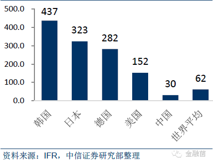 https://xqimg.imedao.com/1573795c6dac0a3fd961b276.png!custom.jpg 查看原图上图是2014年各国的工业机器人密度(台/万工人),可以看到,中国目前的机器人比例还处在极低的状态,仅为世界平均值的一半,更别说美德日等发达国家了;而随着人口红利的逐渐消退,广阔的市场空间以及现阶段相对较低的机器人密度,将成为中国机器人市场爆发式增长的导火索。