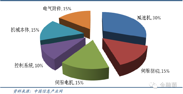 从机器人成本构成而言,最高端的减速机占据了30%的成本,若减速器、伺服电机和控制器等关键零部件国产化,假设平均降低30%的成本,则机器人单机制造成本可至少降低20%。