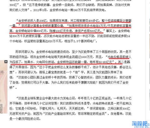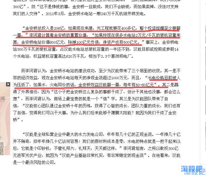 (另:感兴趣的投资者也可以去找一下一些丫丫河上的小趴趴电站的交易价格,有些其规模;来水;上网电价等远不及黔源旗下电站的资产质量,现在的交易价也在1.2万/千瓦上下。推荐百度水电吧,顺便可以学点水电知识O(∩_∩)O)