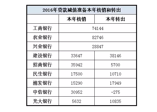 6、从趋势来看,建行、招商和兴业的核销力度有所下降;其他银行核销力度均上升,浦发和农行明显加大核销力度。