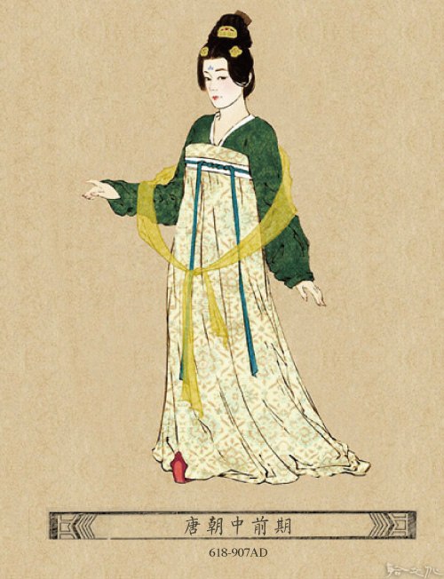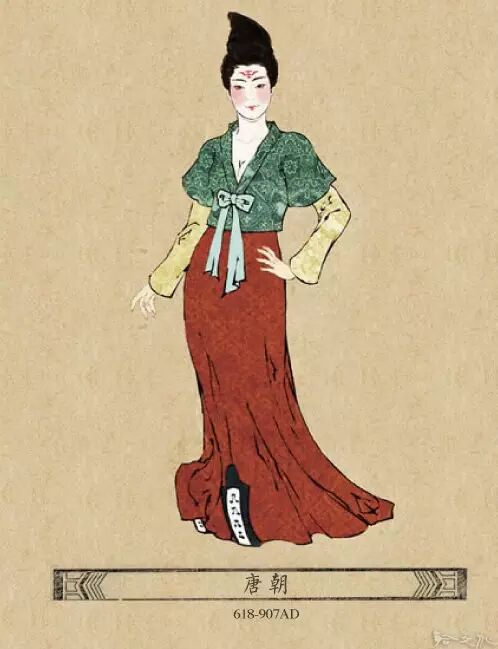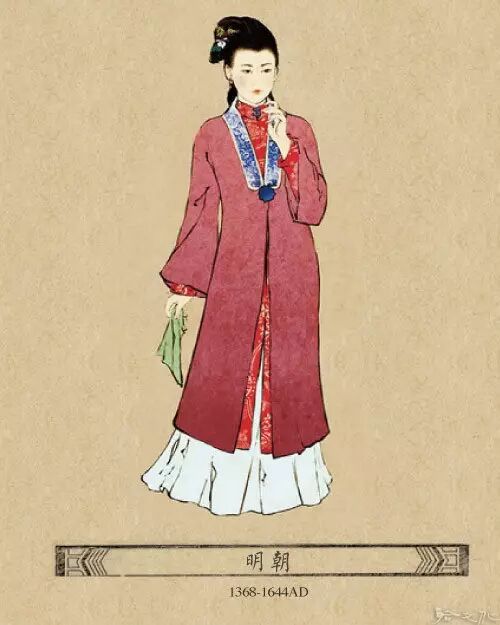 商周礼制十五而笄;西汉深衣制,上襦下裙,街市罗衣飘飘;南北朝衣身紧贴,对襟直领衣袖细窄,引入胡服风范;唐中前期小头鞋履窄衣裳,披帛半臂兴盛;晚唐时世宽妆束,衣裙宽松;宋尚素雅;明霞帔比甲兴盛;清汉族传统服饰终结,满族特色的旗袍影响至今。