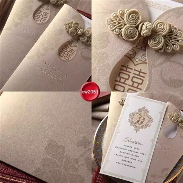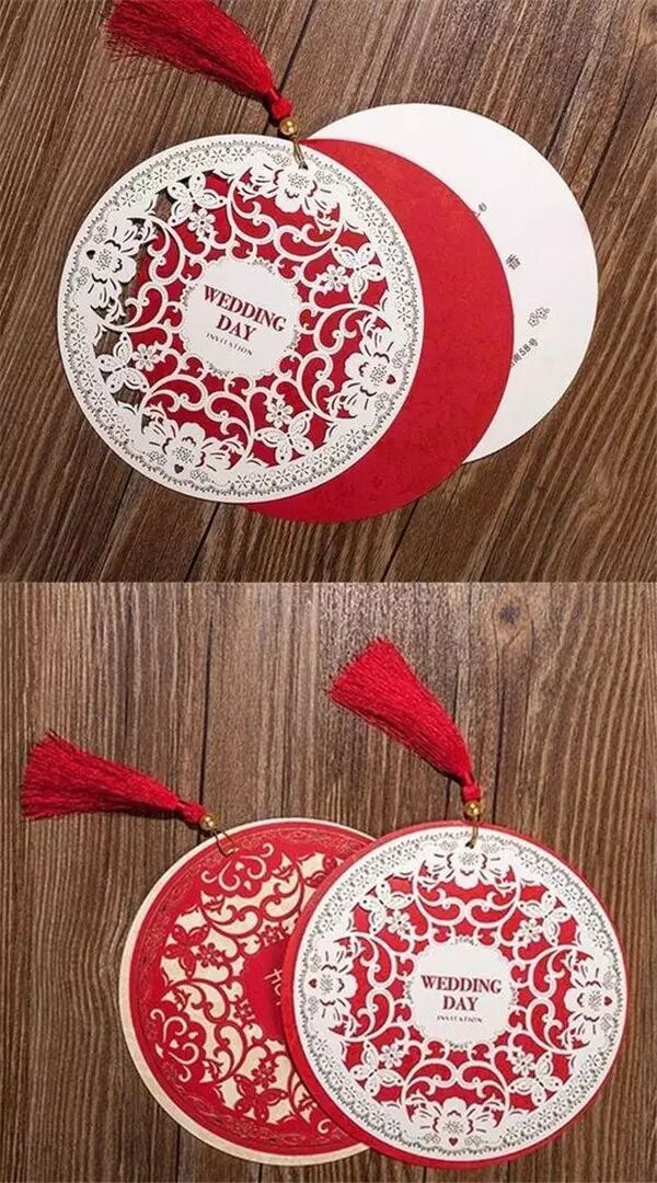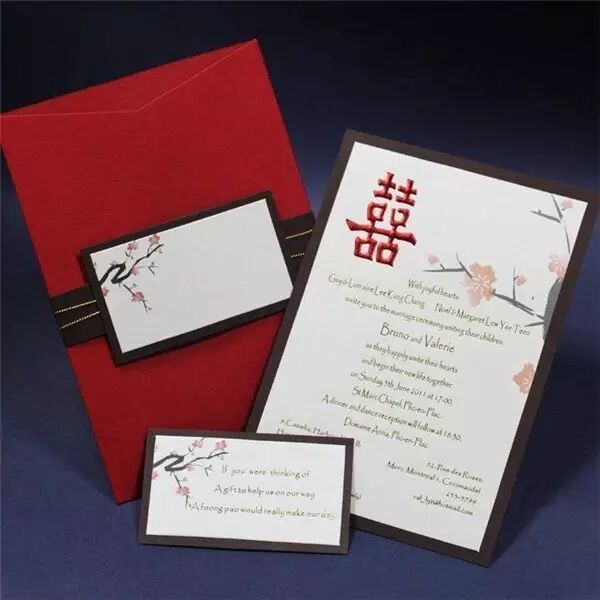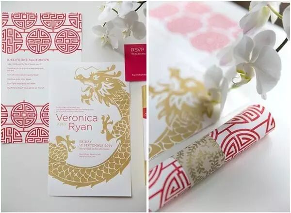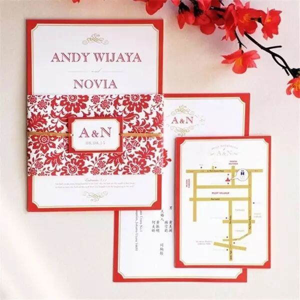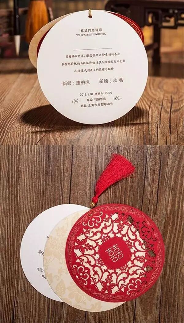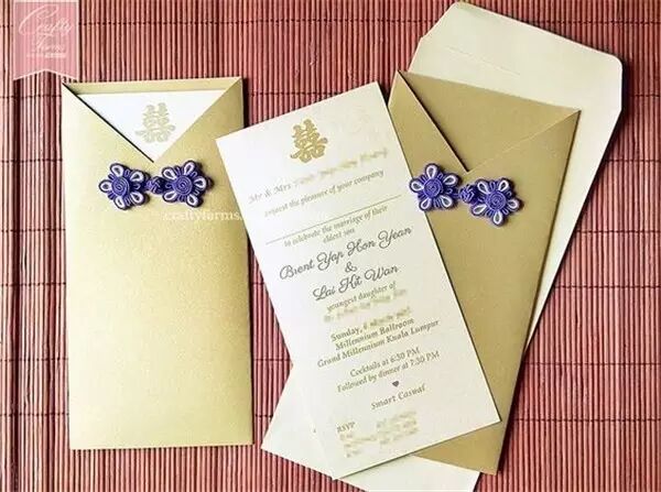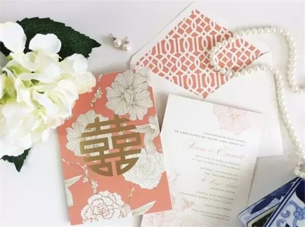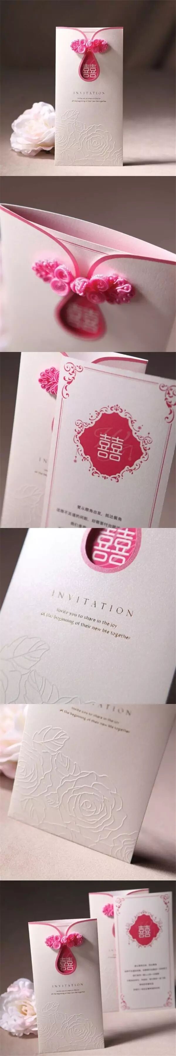 比如巧妙地选用盘扣、中国结,剪纸,各种吉祥的纹理元素,以此突出中式婚礼的文化内涵;除了大红烫金的传统中式风,由淡彩绘制的花卉等图案,则将中国文化中的淡雅发挥到极致;而将中式繁复和西式简约风格结合起来的请柬设计,则深受年轻人的喜爱。
