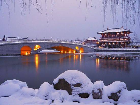大概因历史沉淀,惟有长安的雪让人感受轻灵。在这里,你可以聆听城墙落雪的声音,感受千年古塔积雪的厚重,想象皇家园林雪色的气派。