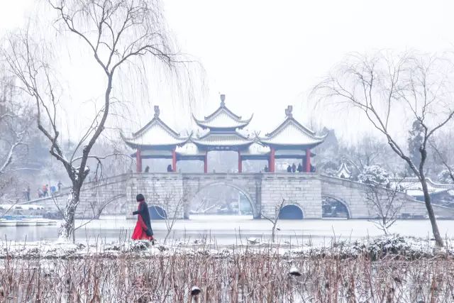 扬州一下雪,就美成一幅水墨画。雪后扬城银装素裹,处处都是唯美画卷。