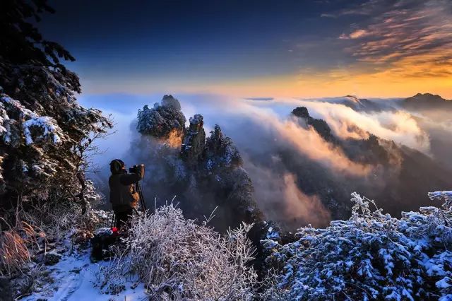 整个景区银装素裹,身临其境,犹如置身于飘然的山水画中。