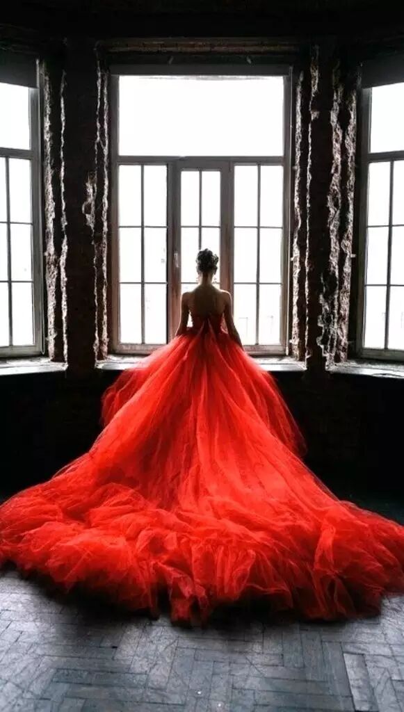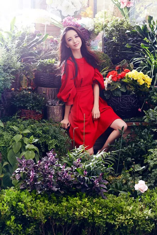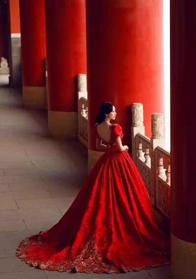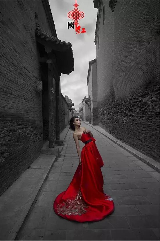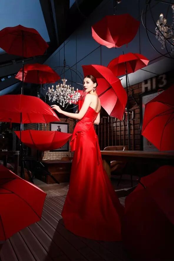 中国红的礼服十二分适于摄影各种凹造型不在话下