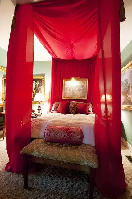 床上用品每逢喜事中国人必会用红色装饰家中大红床幔喜庆又飘逸