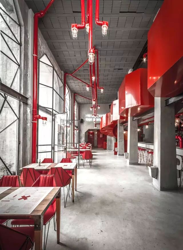 某商业空间大片红色的应用而不显拥堵明暗关系的处理非常到位