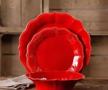 红釉餐具设计采用中国红和边花的搭配鲜明独特中国红也是十分适配传统手艺的颜色
